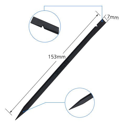 The length of the spudger is 153mm and the wide of its flat end is 7mm. It is the common size for most electronic devices repairing.